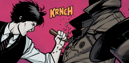 “But,” she adds, “I dealt with it. Did time. Paid my debt. Now I actually used it to save a life. Five by five, right?” She helps the victim up and asks the Slayers if they know who this woman is, the one the guy seemed so enamoured with. Nadira has heard rumours of a woman named Mother Superior, who has become the new ‘it’ vampire in London. She asks Faith if this incident means they can go after her. She’s told that they have no probable cause, but Nadira tells her that being a Slayer gives her that right. “Is it even illegal to kill a vampire?”