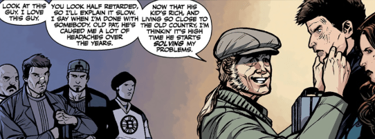 Jimmy actually pinches Angel’s cheeks. “You look half retarded so I’ll explain it slow. I say when I’m done with somebody. Old Pat. He’s caused me a lot of headaches over the years.” He figures since Faith is now rich, this is the perfect time for Pat to start solving his problems instead.