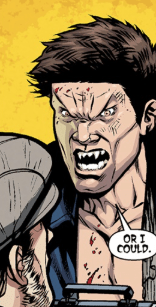 Angel tells Jimmy’s henchmen how to stop the bleeding, showing them how to torniquet the wound. He tells them to keep the pressure on and tell the police anything except the truth. He vamps out and throws the box in Jimmy’s direction, grabbing a hold of his stump. “Take your money, go back to Boston, never bother us again. Cause what I’d really like to do with this arm is drink from it like a hose.” The threat is taken seriously, a scared henchman nodding profusely and agreeing with Angel’s every syllable.