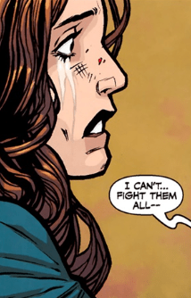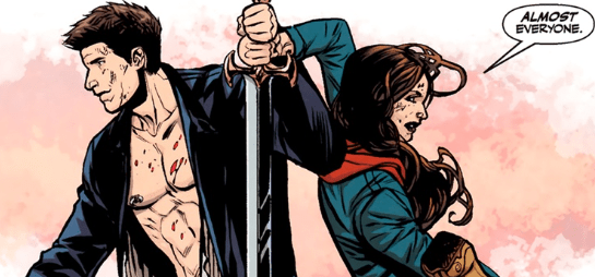 Then she stands back-to-back with Angel, weapons in hand. “Almost everyone.”