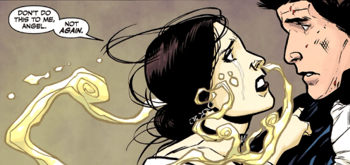 Angel extends his hand to help the Slayer to her feet. As she rises, however, he asks her a question: “What else is gone?” He asks her how she feels about the fact that a few years back she killed an innocent man. “Five by five?” he challenges.