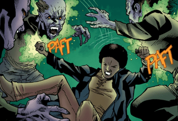 The Slayer doesn’t look at him. “I survived,” she coldly states. The man helps her to her feet. His name is Bernard Crowley, a member of the Watcher’s Council of England. She is his Slayer, Nikki Wood. This is her Cruciamentum, a test of her Slayer abilities that all of Chosen Ones are subjected to: a brutal challenge where the girl must overcome the odds without her Slayer strength. He condemns the Council for putting Nikki through hers at this time, not when she herself is in such a delicate position. He glances at her stomach. She’s not showing yet. Nikki tells him that all Slayers go through the Cruciamentum when they turn 18 and she has no desire to shirk the mission because ‘her life got in the way’.