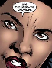 1973. The current home base of Nikki Wood. Bernard is stitching up her wounds. He suggests that, perhaps, Nikki’s unborn child could be raised by it’s father. Nikki looks at him. “Crowley, you know what I do. You know I see the bad stuff. When I blow off steam, I don’t always collect names.”