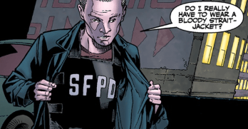 Elsewhere in San Francisco Bay, Spike and Dowling are still waiting when Spike’s cell phone buzzes. He has a message from Buffy: she needs him. Dowling gets in the car, asking what the situation is, but Spike tells him it’s less action and more talking. Dowling grins. “You going to tell her how you really feel about her or are you going to bottle it up until Buffy’s too old to care?”