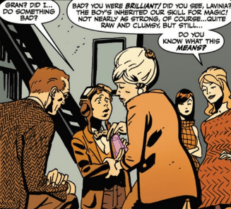 With the demon gone, Rupert opens his eyes and asks his grandmother if he did something wrong. Sophie tells him that he was brilliant. “Did you see, Lavinia? The boy’s inherited our skill for magic! Not nearly as strong, of course, quite raw and clumsy, but still, do you know what this means?” she asks excitedly.