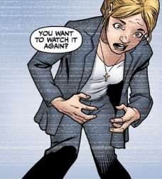 Kennedy refuses: “A corporate assassin in a bad French maid’s outfit slipped right past you!” Yes, it was because Buffy saw a demon, but she’s still thinking like a Slayer. “People hire us because we’re strong, smart and good in a fight. Not because they’re scared of refugees from a Hell dimension next door.” She’s in the world of kidnappings, ransoms and assassinations now… so if Buffy wants to qualify for field work, then she needs to pass the test and stop reacting like a Slayer. Kennedy tells Buffy that she’s on security detail for a social-media star the next day – and she would like Buffy to join her.