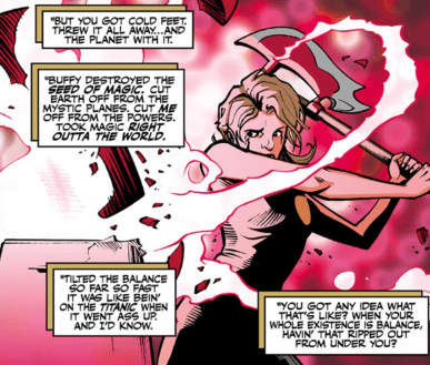 But you got cold feet, threw it all away and the planet with it. Buffy destroyed the Seed of Magic. Cut Earth off from the mystic planes, cut me off from the Powers and took magic right outta the world.
