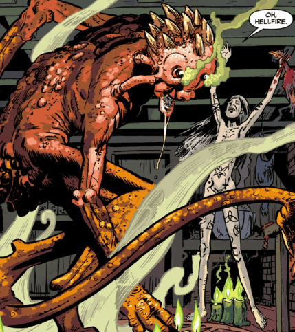 “Oh, Hellfire.” He sighs. There’s a woman, thin and frail, naked save arcane tattoos that she’s inked onto her flesh. The woman holds a dead chicken in one of her outstretched hands, clearly the sacrifice required. The demon looks at her with absolute disgust.