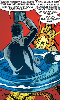 Susan is not scared in the slightest, and attempts to get in a shot at the man before he fades, to no avail. “You always had a mouth on you, Alasdair Coames,” she warns. “One of these days, I’m gonna weld it shut. Run, ya yellow sissy.”