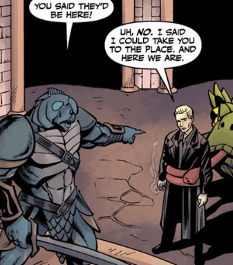 The shark demon calls Spike a liar, but a voice from deeper within the chamber tells the demon that Spike is, indeed, not lying. The shark turns, pulls his sword toward the voice and demands that the intruder identify themselves.
