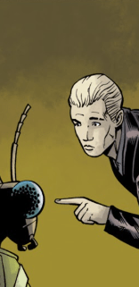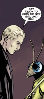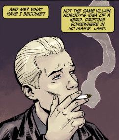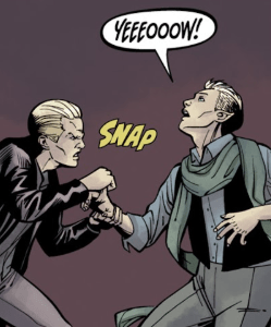 Morgan changes the subject abruptly, bringing up what he said in Sunnydale about the shards. Spike leans back and admits that there was indeed a plan in place, in case: “The Slayer knew dangerous folk like Pearl and Nash would come looking.” He briefly mentions Buffy, but thinks better of revealing their connection to Morgan. “Anyway, we couldn’t just leave the little bits of the Seed lying around.”