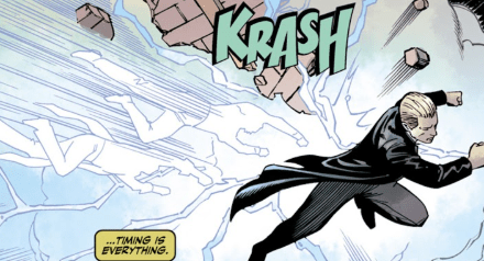 Spike doesn’t flinch. In one swift motion, he grabs Nash’s hand and twists hard, snapping a finger with a satisfying crack. Nash howls, rage igniting. Before Spike can land a quip, Nash’s other fist surges with crackling energy, and he swings – hard. The impact hits like a freight train, sending Spike sprawling with an expletive that burns as much as the hit.
