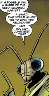 “Then why, Master, are we so agreeable to take Ms Morgan to a Hellmouth when we know it is impossible for her to open it without magic?” Sebastian looks up at Spike, his finger pointed upwards. “Is it possible that a shard of the Seed remained, Master? A shard that would allow her to open the Hellmouth? Have you not considered this?”