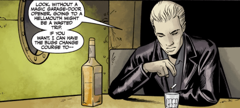Morgan smiles. “Of course,” she says. But she has a further question. She asks Spike if he’d be willing to take her to where the pieces of the shards are hidden now – if she could simply borrow even a sliver of magic? Spike interrupts. “The Slayer knew we had to get rid of the shards for good. I shot them into the sun,” he tells her. He leans forward, tossing his used cigarette into his empty whiskey glass.