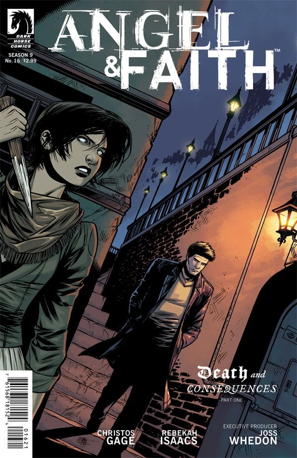 Her boots squelching on a wet substance that she doesn’t even want to identify, Faith Lehane aims her weapon ahead of her into the dimly lit-cavern. “Damn, you were right. These creepy-crawlies regenerate from pretty much anything.” She’s talking to Angel, who’s ahead of her, swinging his sword as strange lizard demons nip at him with sharp teeth. “Except being burned to ash,” he says, dodging another strike by severing the demon’s hands. “So, as soon as I’m clear,” he signals to his companion.