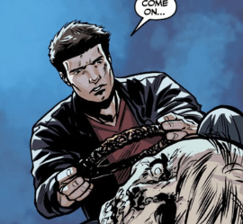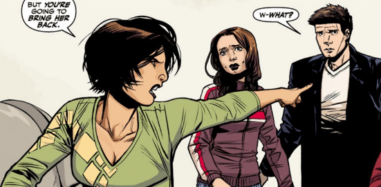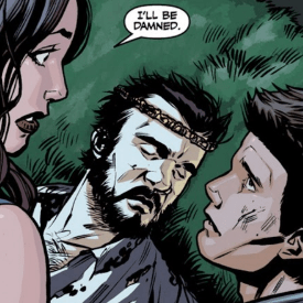 As they get up, they observe their surroundings. They’re somewhere in Peru, high in the mountains, looking for a particular magical artifact. Faith asks, now that they have it, what the hell it is. “It’s the Crown of Coils,” Angel tells her. “Most people think those things regenerate biologically, but it’s really because of this.” He holds up the artifact, a round, metallic ring, evidently a crown, coiled like a spring. “And it looks like it’s still charged.”