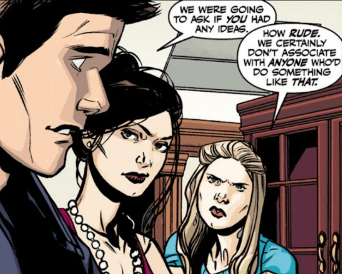 “…I find it extremely difficult to believe he absconded on his own.” Lavinia places her hands on her hips, staring at Angel. Faith gets in between the pair, urging the sister to listen with her calm voice. “The grave was untouched. We checked cemetery records, security tapes… It’s been that way since he was buried. Which means, his body was stolen. Before that.”
