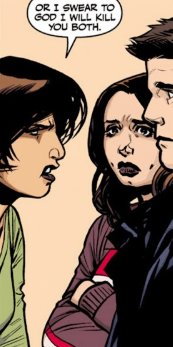 Faith rolls her eyes. “Make a list. It’s been months. The trail isn’t exactly hot. We’ve got to pull out all the stops on this.” Her speech and instructions are interrupted by a pounding on the front door, one that as soon as it happens, signals the person outside on the other side is angry. A voice comes through the thick wooden door. “Faith! We know you’re in there.” Squinting through the peep hole in the door, Faith can see Nadira and the other Slayers, Nadira with a face like thunder.