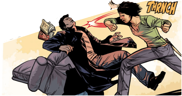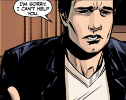 Angel stares at the Slayer, stunned by her sudden request. “We’ve been asking around,” Nadira explains. “About both of you and what you’re up to. We’ve torn up demon dens from here to Scotland. We know. You’ve been looking for a way to resurrect the Watcher who used to live here, Rupert Giles? And rumour has it, you’ve succeeded or come damn close.”
