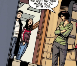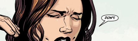 She turns to leave, but finally, before she goes, she turns. “One last thing. Faith,” she says, looking her former mentor in the eyes. “We trusted you. And you lied to us.” The look of pain on her face and in her eyes is palpable. “You looked into my face and you lied.” She points at Angel, who looks away from her glare in shame. “For him.” The other Slayers move behind her now. “You made your choice. Now live with it. We want nothing more to do with you.” With that, the Slayers all file out the front door, Nadira last, never once taking her eyes from Faith.