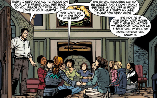 “Yes, of course,” Ethan replies, voice casual but dripping with derision. “Here’s the key to power. Now don’t use it. That’s what all the books say, don’t they? We’re breaking down the old barriers. Making the occult serve us, not the other way around. I’ve done it all myself. We all have. Actually been possessed” – he leans into the word – “by a being who was old when the world was young.”