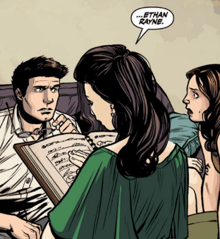 Angel nods grimly. “Ethan Rayne was being held by the U.S. Government. A general – working for me – shot him in the head. Murdered him. The security in that place… standard procedure was to cremate all remains. I never imagined he could’ve made it out.”