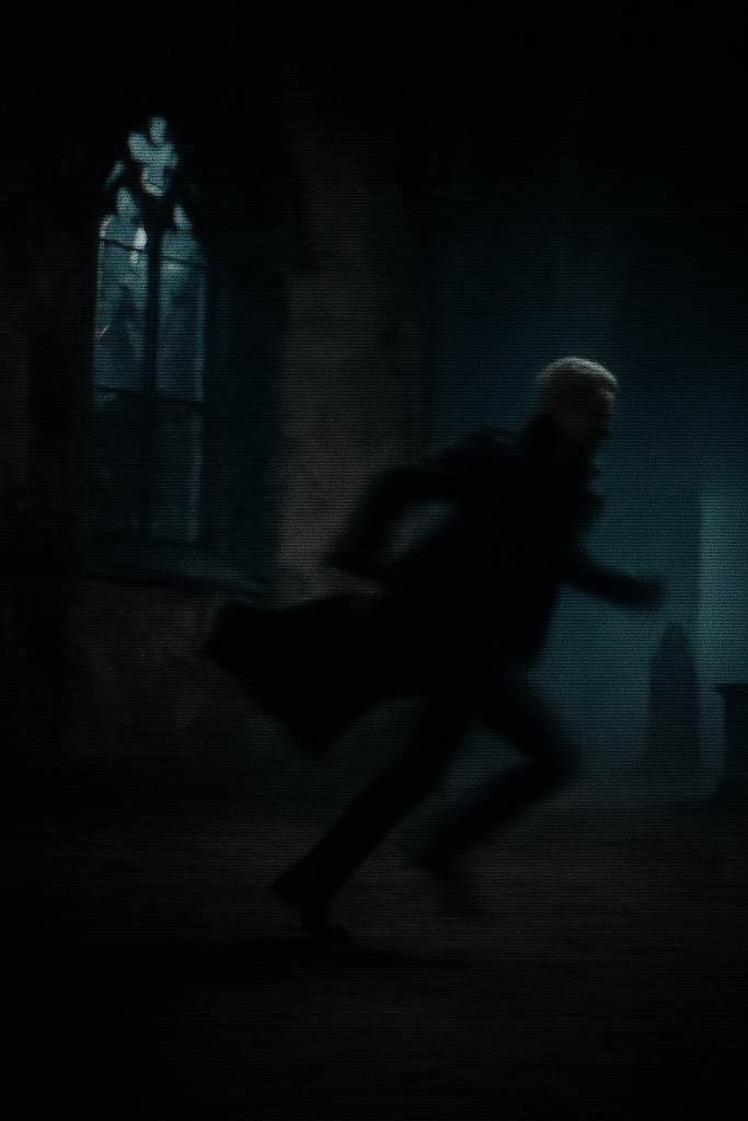 He tore through the chapel wall like fury. Coat whipped out behind him, boots slick with blood. There was shouting beyond him. Metal. A mob.