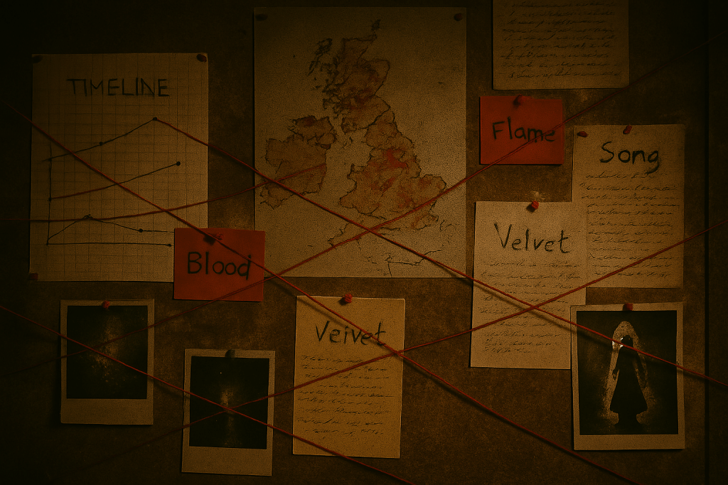 Colour-coded it by theme – blood, flame, velvet, song. Created timelines. Threaded maps with red string. My flat became a shrine to madness.