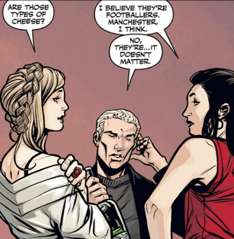 Faith had previously compared Spike to Angel in Dirty Girls, which he denied profusely: “We have very different colourings!”