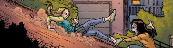 Buffy pauses, a faint air of… recognition? Then the zompire kicks her away and sends her reeling, before the Slayer can question the feeling more.