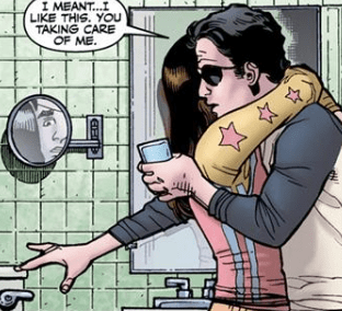 “No,” she answers in return, sitting in a heap against the bathroom wall.