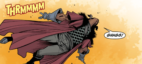 With that Marrak the ‘Not-so-Okay’ is physically kicked out of the Witches’ Paradise. As he lands in a heap, back in the barren desert where Aluwyn first found us, she orders him, threatening him with violence if he ever dares to return (and she’s damn hot doing it).