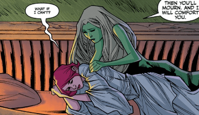 “Then you’ll mourn. And I will comfort you.” She tucks me in, and I can feel myself dozing by the time she’s less than a metre away. I’m nearly asleep, wrapped in heat and sorrow. Aluwyn’s voice drifts past me – soft, maybe too soft. Something in it curls around my spine. It sounds like comfort.