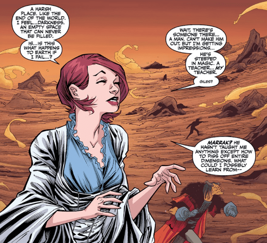 And then I see Marrak? The only thing he’s taught me is how to piss off entire dimensions! I don’t understand. What could I possibly learn from Marrak? All he’s doing is complaining as he walks. But where is he going? Leave him eat his nightmare bird in peace…