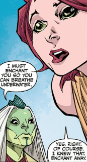 Willow wonders if Aluwyn is lying to her; in the Saga Vasuki’s first appearance in Goddesses and Monsters, Aluwyn told her she would always lie.