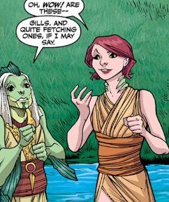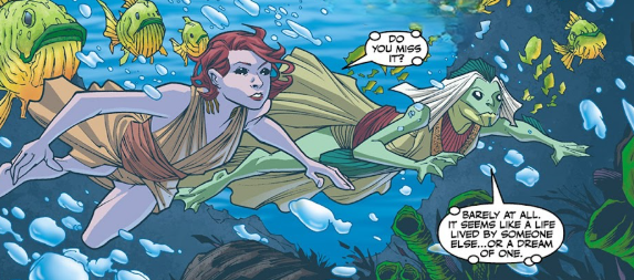 I feel my pupils dilate and my eyelids change. I can feel my irises change shape and my eyes grow wider. As she pulls away, I notice there are gills on my neck now. She’s enchanted me so I can breathe underwater. She tells me, in between flirting, that it’s only a temporary thing and that I don’t have much time. She dives under the surface, calling me to follow.