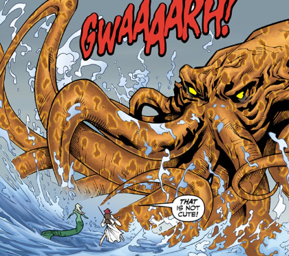 As she talks, I realise she’s right. My path led me to her. But I get distracted as the octopi start burrowing into something just under the surface of the water. I’m curious what they’re doing, but then Aluwyn whispers “Oh No” behind me, which is never a good sign.