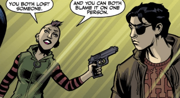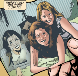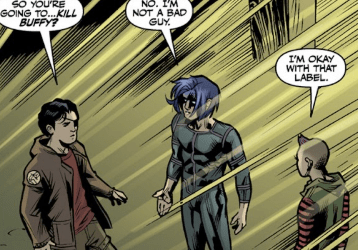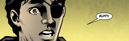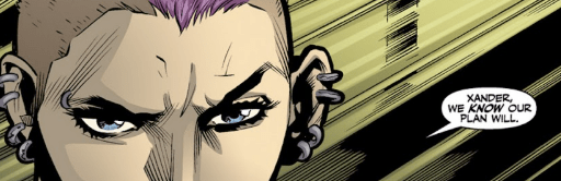 As much as I hate agreeing with Tank Girl, maybe she’s right. What can Buffy do? We have no Giles, no Willow, no magic. No options. What do we do?
