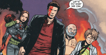 With a steely gaze, and joined by the others as they turn to walk the streets, Angel and his team start to pick up the people, clear the debris and help who they can.