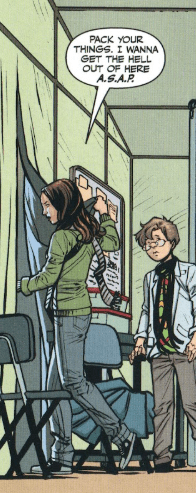 She strides towards the door, eager to mask her feelings on the subject and walks out the exit, snapping back at Giles. “Pack your things. I wanna get the Hell out of here ASAP.”