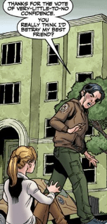 “You really think I would betray my best friend?,” he says and then slaps himself on the side of the head, remembering. “Oh, yeah. Our fight. Walls punched. Things said that can’t be unsaid.”