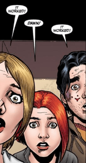 Buffy is too excited however and ignores the damage she sees everywhere. “Does the ‘BOOM’ mean it worked?”