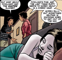 Billy discovered that Anaheed was a Slayer in Welcome to the Team (Part 3). He also mentions Dowling’s hospitalisation in the same arc, as well as Simone’s Slayer/Zompire hybrid.