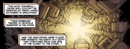“The most powerful – those who couldn’t be defeated by death – were entombed in sarcophagi. Their essences trapped in crystals, embedded into the stone. Then they were placed deep beneath the Earth, in a crypt that stretches from one side of the planet to the other.” She looks up from where she’s sitting on the bed.