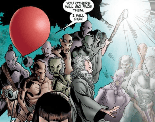 Severin is less amused, eager to continue. “Didn’t hurt that you beat him to a pulp.” He looks up as the little girl with the red balloon is now left alone at the entrance. “Let’s move. As long as the Council is distracted by Buffy…”