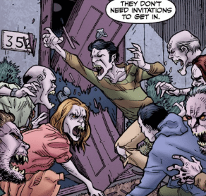 “You’re eating cookies? They’re eating people!” He shows him an image behind him on the local news. Vampires are running around Santa Rosita, eating and roaming indiscriminately. His next sentence chills Billy even more. “And Billy, these don’t need invites to get in.”