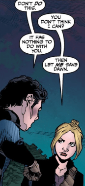 “Don’t. We had one mission, Xander. Save Dawn.” She turns back at him, anger on her face.