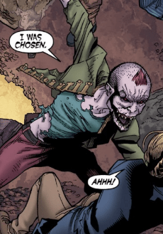 “Spare me the self-righteous lecture about power, duty and the proper way to hold a stake. No one ever asked me if I wanted to be a Slayer. I was Chosen.” She senses Xander behind her, moving into position to grab her and, without looking, punches him back, hard, against the cavern wall. She points to herself and applies more pressure to Buffy’s wrist. She drops the Scythe. “But this? This I chose.”