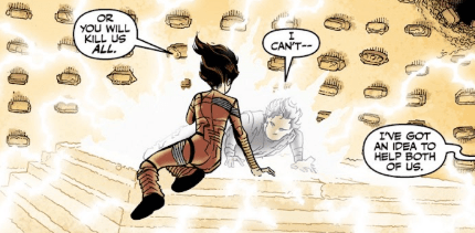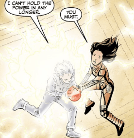 As Willow floats up to Illyria, she smiles at the Old One and presents the Seed in her hands. “Got any jumper cables?”