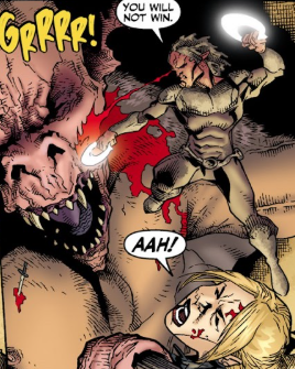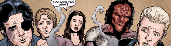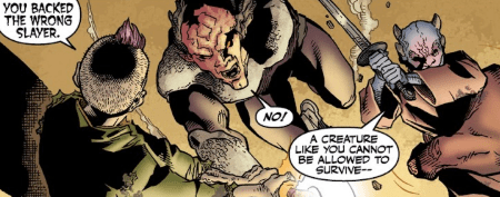 As D’Hoffryn and Koh both thud behind her, slightly worse for wear, Buffy surprises both her friends and herself by getting up and raising a sword up with grim determination in her voice. “No.”